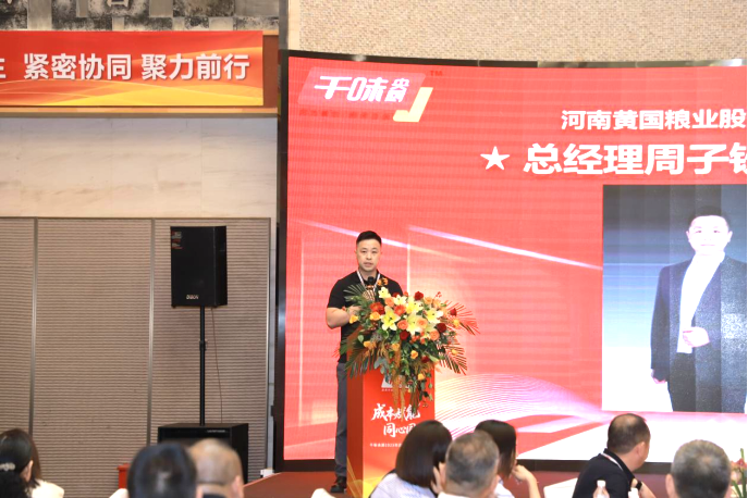 河南黃國糧業(yè)股份有限公司總經(jīng)理周子鈔上臺致辭,回顧與千味央廚合作的點滴歷程,同時也很榮幸能夠與千味央廚共同合作,為千味央廚提供糯米粉原料支持,協(xié)助打造千味央廚首個過億大單品芝麻球;周總表示未來希望能夠與千味央廚持續(xù)深化合作,實現(xiàn)互利共贏。