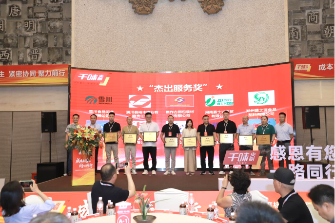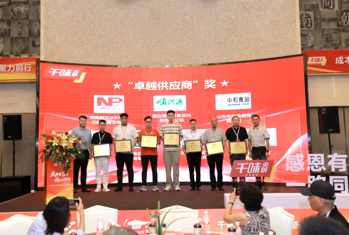 大會高光時刻,年度優(yōu)秀供應商頒獎環(huán)節(jié)。千味央廚為在過去合作中表現(xiàn)卓越的供應商伙伴頒發(fā)榮譽獎項,表彰他們在產(chǎn)品質(zhì)量、供應效率、創(chuàng)新支持等方面的突出貢獻。這份榮譽不僅是對供應商的肯定,更是激勵雙方未來繼續(xù)攜手前行的動力。